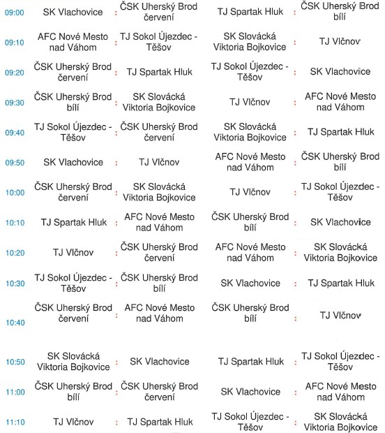 Začátek turnaje je v 9:00 hodin. Hrát se bude na dvou hřištích oddělených florbalovými mantinely.